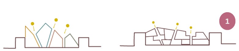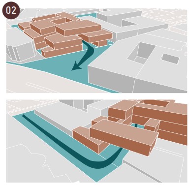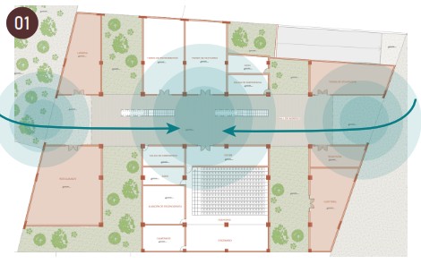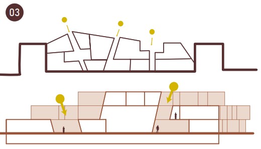 APLICANDO ESTA IDEA AL PROYECTO SE PUEDE LOGRAR UNA VENTILACIÓN Y LUS NATURAL PARA LOS ESPACIOS. ADEMÁS SE CREAN PATIOS INTERNOS QUE SE INTEGRAN CON EL RECORRIDO