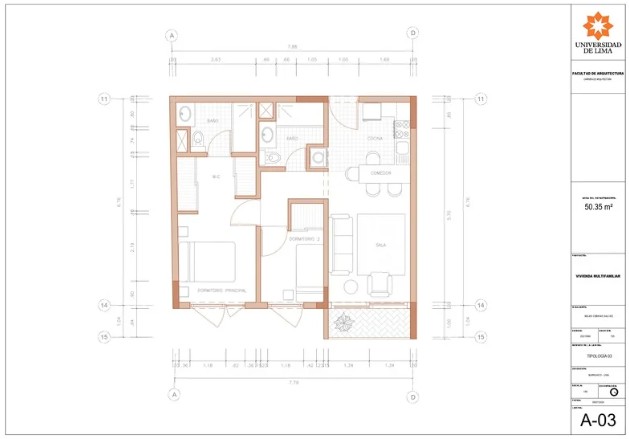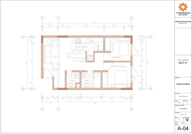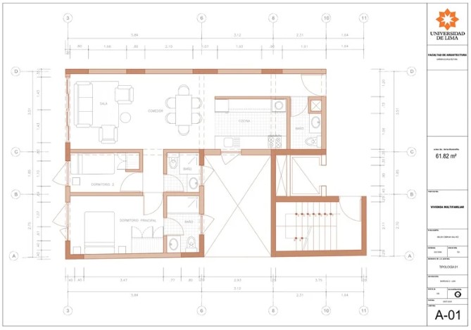 Finalmente, dejamos de lado el diseño de la fachada del edificio para poder concentrarnos en las tipologías de los distintos departamentos y su respectiva distribución incluyendo su estructura como parte importante al momento de ver donde colocar ventanas o ductos de ventilación. Esta parte fue más sencilla ya que previamente habíamos realizado la calistenia de tipologías que hizo que nos familiaricemos con las áreas con las que trabajaríamos. Ante esto considerado que la distribución de los departamentos estuvo bien lograda ya que los recorridos estaban bien controlados, las habitacioines contaban con buena ventilación, el espacio social se podía diferenciar del espacio privado e incluso se pudieron agregar los respectivos balcones en ciertas tipologías que ayudarían a darle movimiento a la fachada.